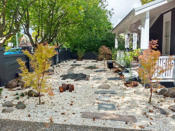 A contemporary Australian take on a minimalist Japanese garden, built around a collection of unique granite-block stepping stones.