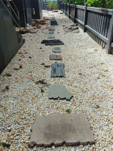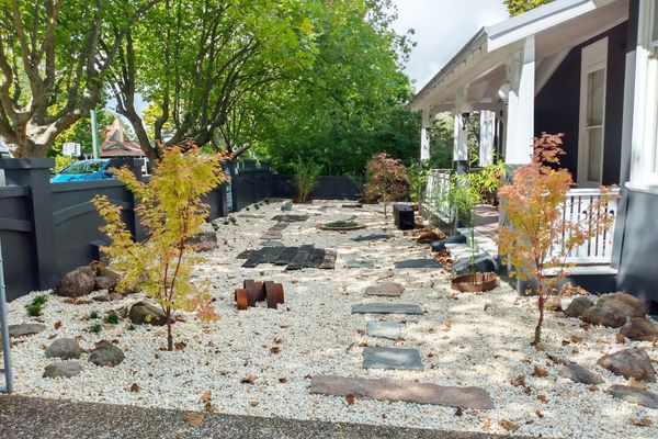 To transform this front yard (dominated by outdated paving, overgrown hedges, and hit-and-miss plantings) into a contemporary Australian take on a minimalist Japanese garden, built around a collection of granite block stepping stones.